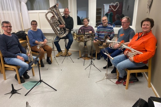 På onsdagskveldene er frivilligsentralen fylt med glade korpsmusikanter. De har funnet ut at det er mer morro å øve sammen, enn hver for seg.
