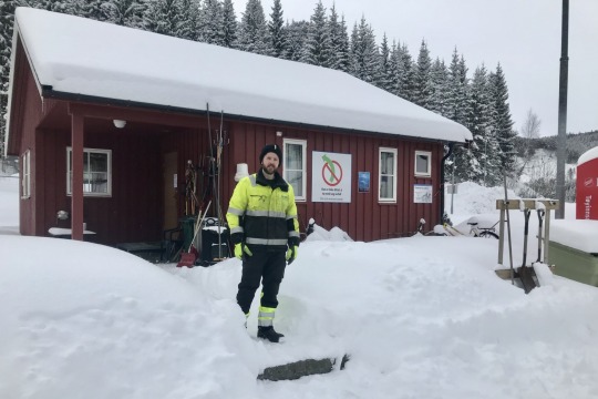 Erik Dragset og resten av administrasjonen i Simpro har hjemmekontor og innført strenge smitteverntiltak i bedriften som har normal produksjon mens de også lager visir som skal leveres kommunen.
