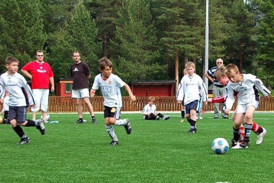 Det ble sparket flere fotballkamper mellom de yngste ved åpninga av kunsgrasbanen på Heggøya. Kampene ble rene lokaloppgjør og her spilte både jenter og gutter.