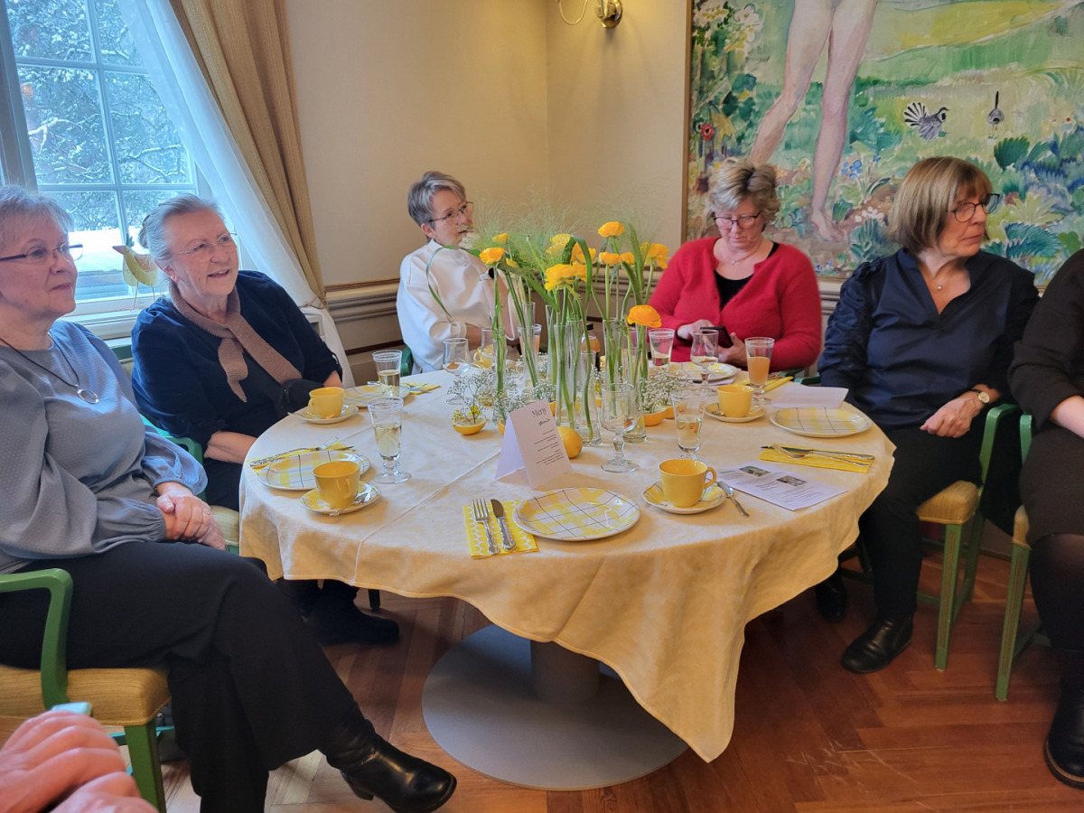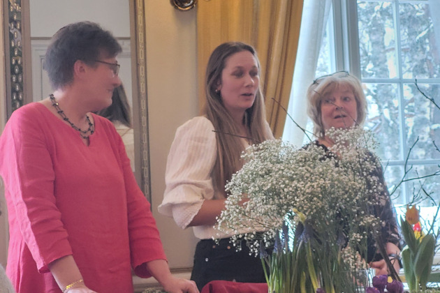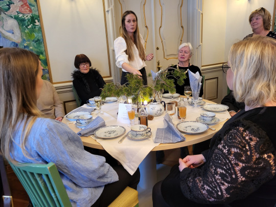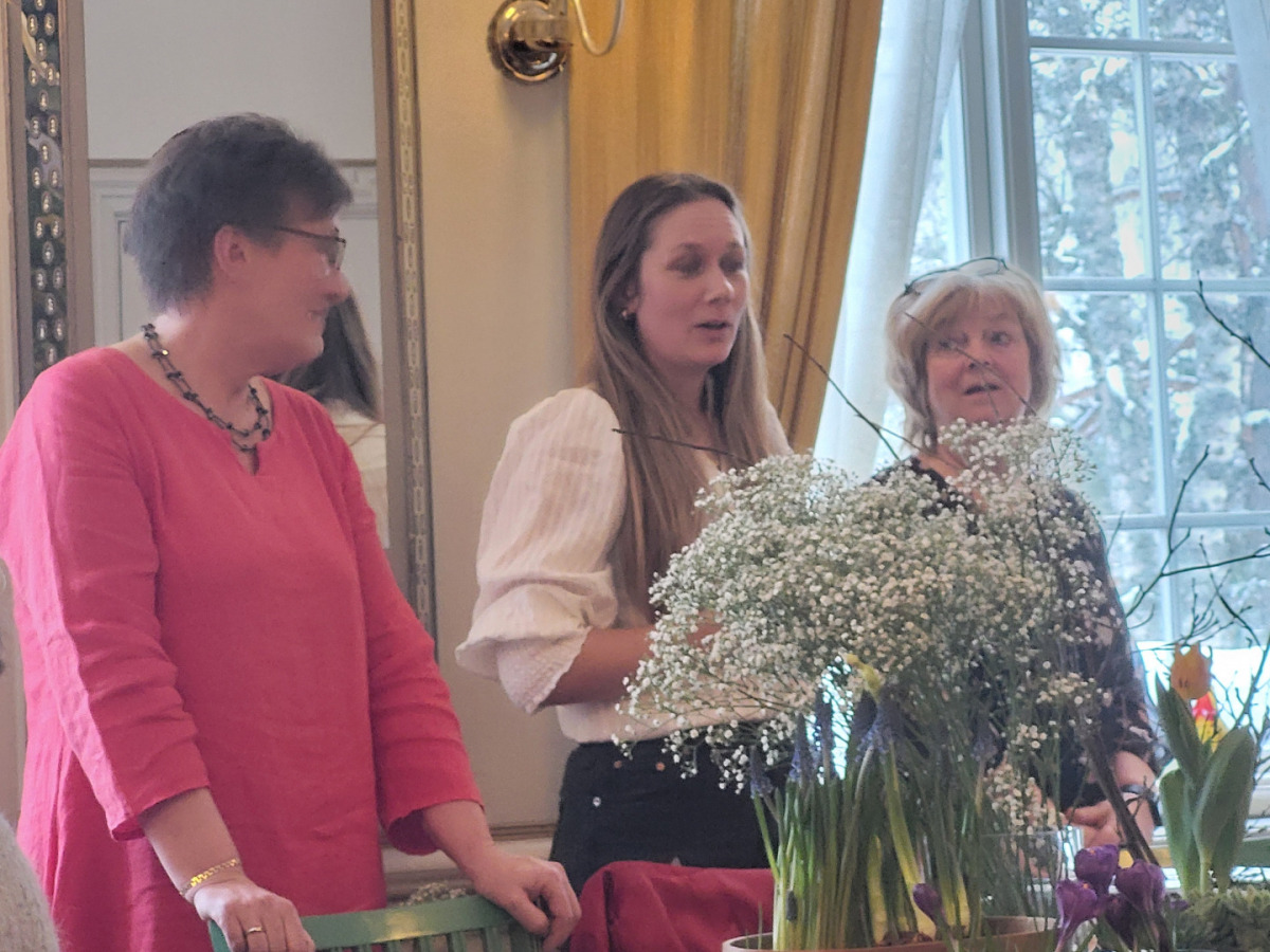 Vi ble ønsket velkommen av Marja Janka. Hun fortalte litt om tanken bak og forarbeidet med med å finne servisene som ble brukt. Vi fikk også høre hva hagelaget driver med det var en tydelig engasjert dame som formidlet glede over å holde på med blomster og det sosiale samholdet i hagelaget.