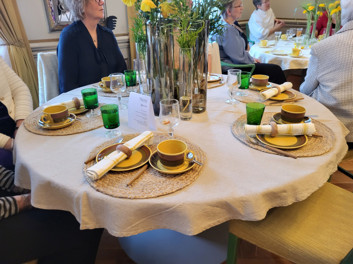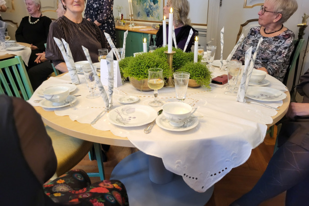 Randi Syrstad Kvam, Maj Britt Svorkdal Hess og Birgit Tronshaug fortalte om sin deltagelse. Randi stilte med egne serviser i tillegg til de hun hadde fått lånt. Det var keramikk og porselen og til og med ett som var håndmalt. Det var tøyservietter på alle bord, noen var laget for anledningen av kopphånduker. Bestikket var både sølv og Skaugum-bestikk med teakskaft.