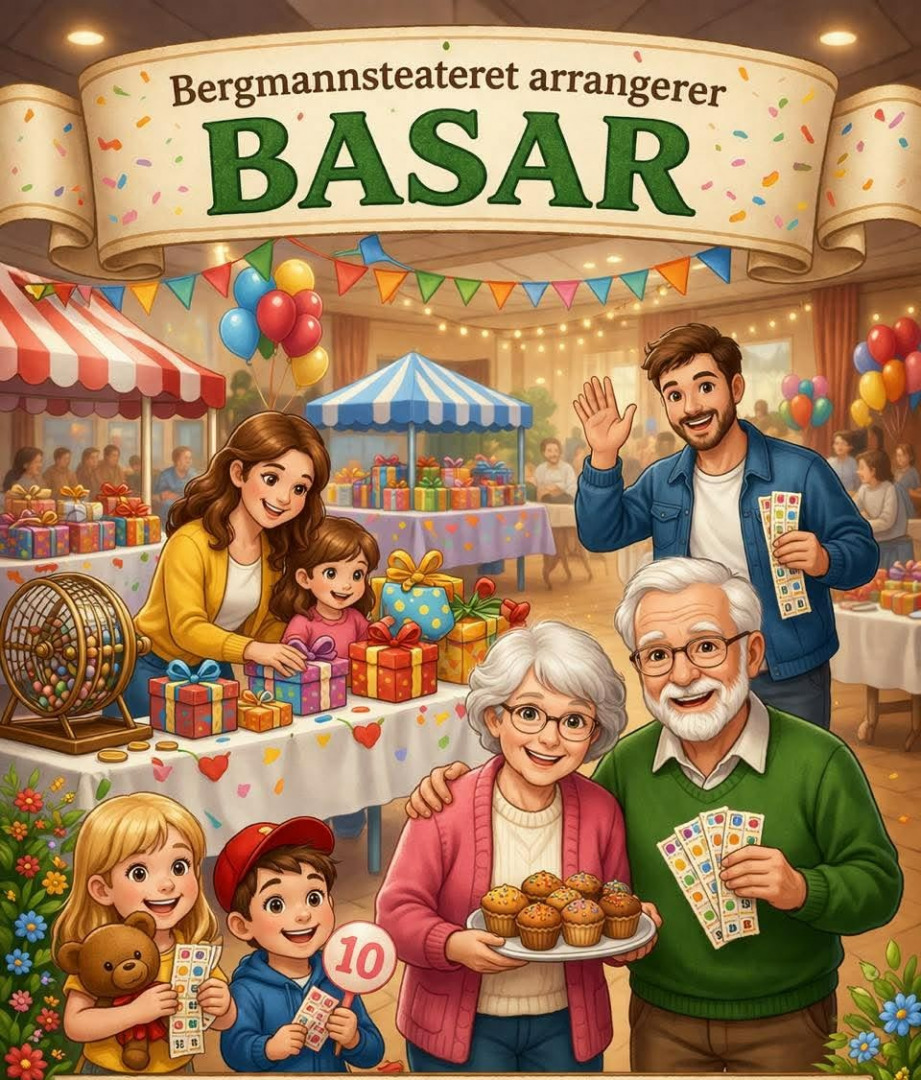 Søndag 12. april arrangerer Bergmannsteateret nok en gang basar i "Idrettsbygget" på Løkken.