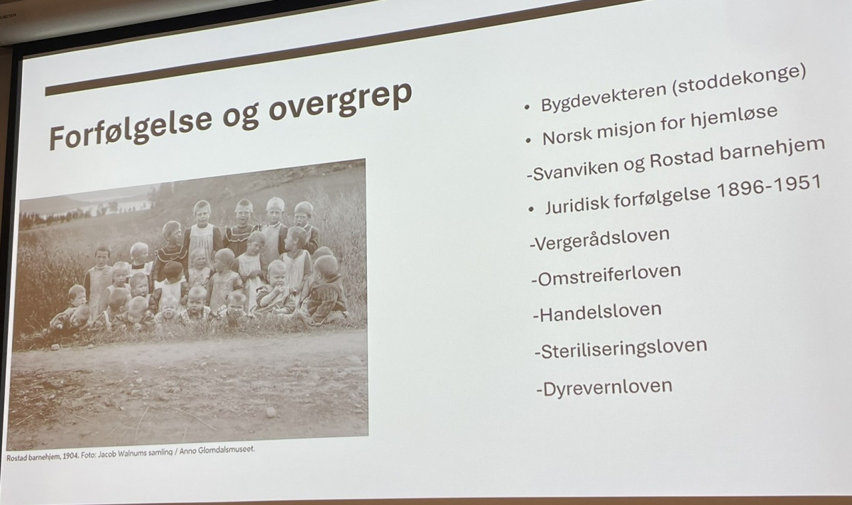 En annen del av historien er langt mer alvorlig og krevende, men like viktig å fortelle om. Det er hvordan det offisielle Norge behandlet de reisende. Gjennom ulike lovverk ble direkte overgrep tillatt og totalt kan dette beskrives som etnisk rensing.