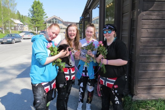 Tirsdag før 17. Mai møtte vi en bukett smilende russejenter som delte ut roser i Løkken sentrum