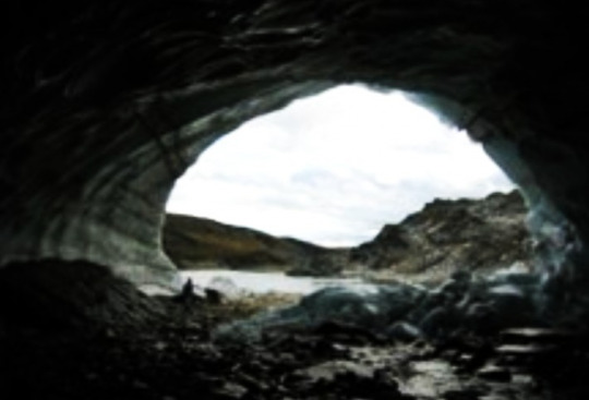Kom lys fra taket, - stein hadde smeltet gjennom isen.