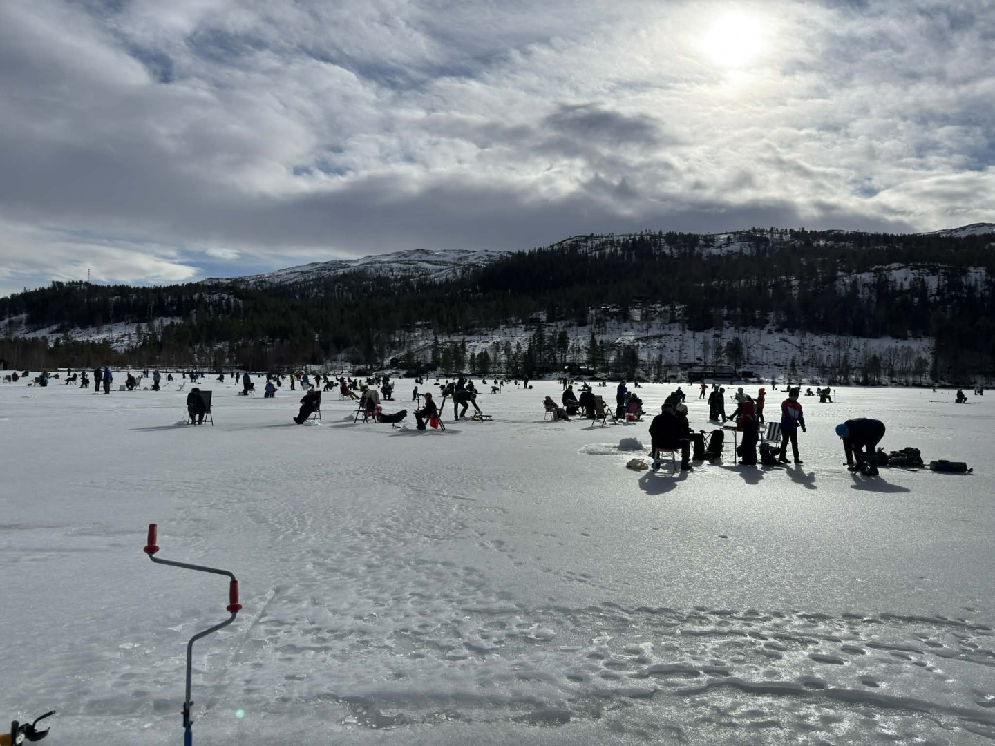 Antall solgte fiskehull ble ny rekord med god margin, hele 265 stykker og det er kun ett hull per person så det var folksomt på isen i år.