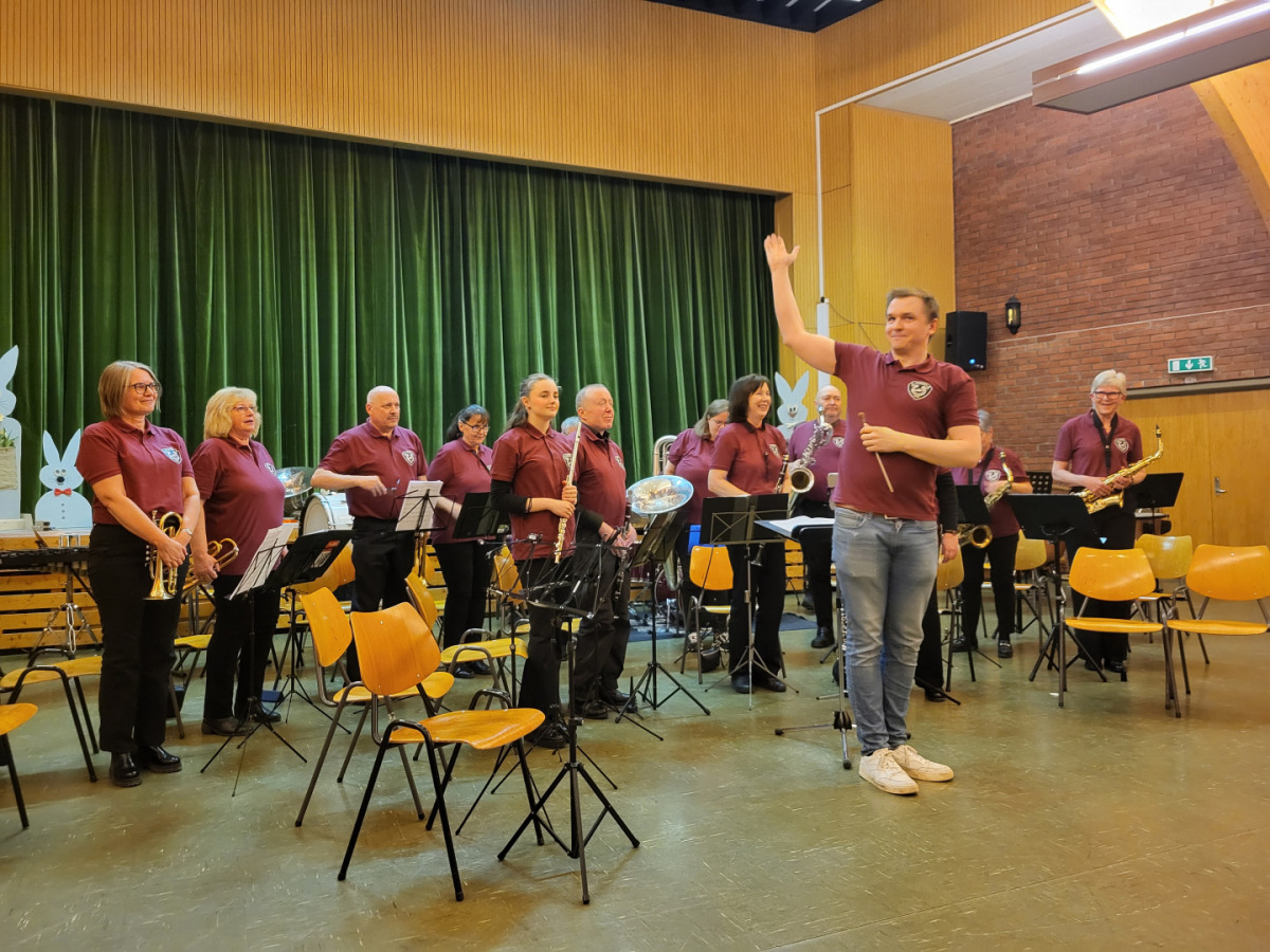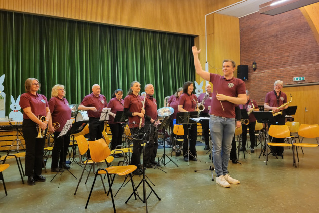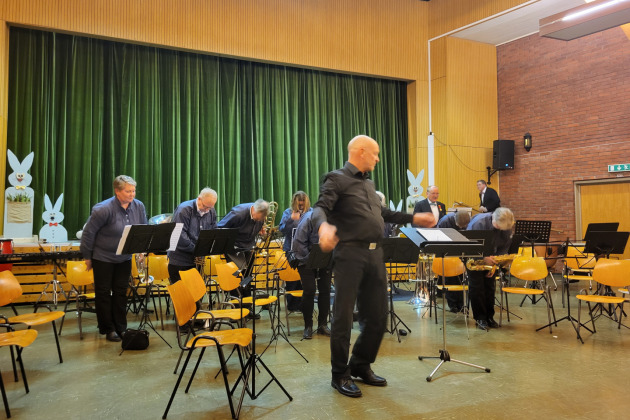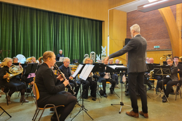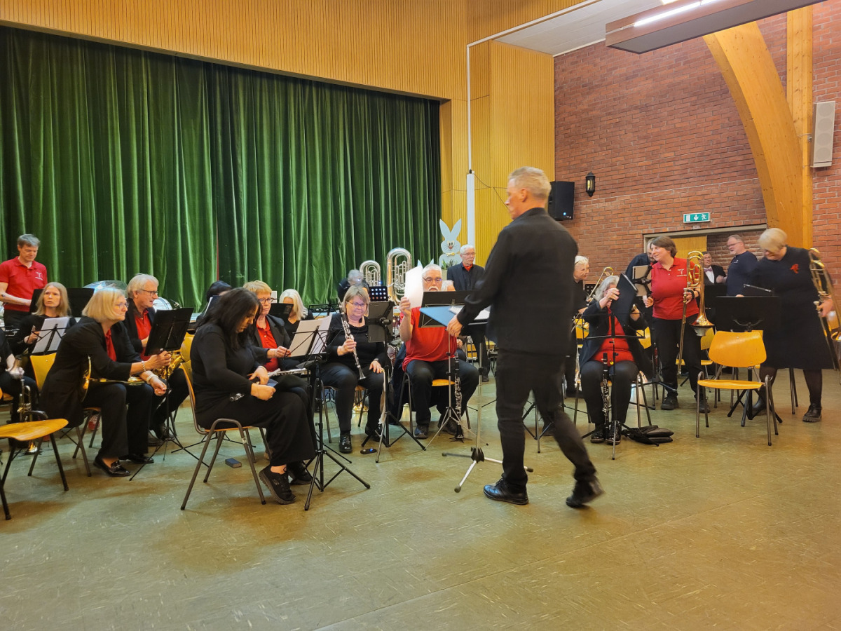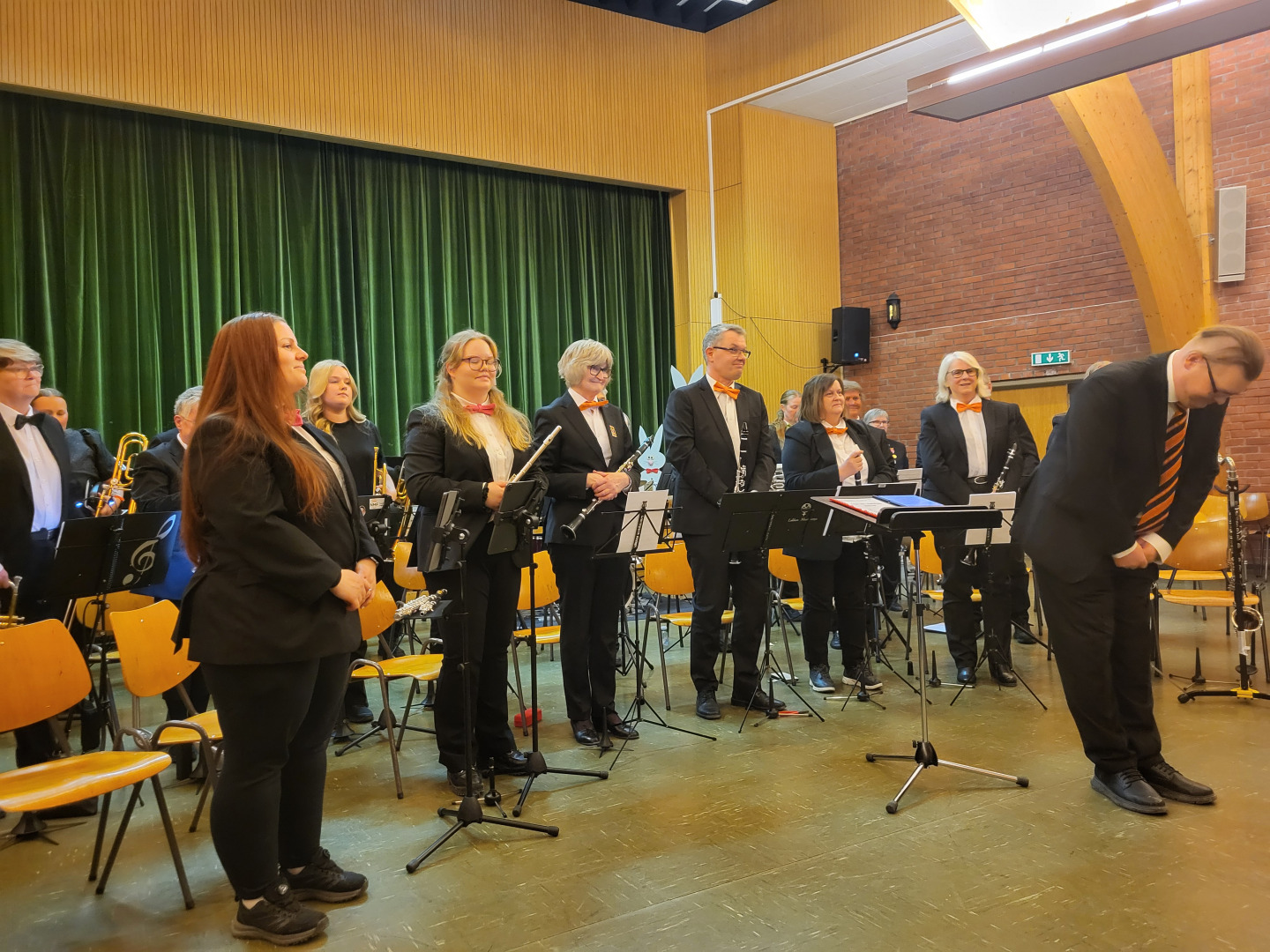 LØKKEN Musikkorps med sin dirigent Stian Rødskjær var først ute. De var arrangører og hadde ansvaret for mange oppgaver, så da var det greit å være ferdig med spillingen. Som alltid var det fengende musikk de vartet opp med og de fylte hele rommet. Den marsjen de tok til slutt, var helt nydelig. Etter den første melodien som var «Choose Joy» og inneholder kjente toner fra Bethoven’s «Ode til glede» fra symfoni nr. 9, truet/lovet han oss hele Bethovens symfoni nr. 5. Det beskriver en sprudlende dirigent.
